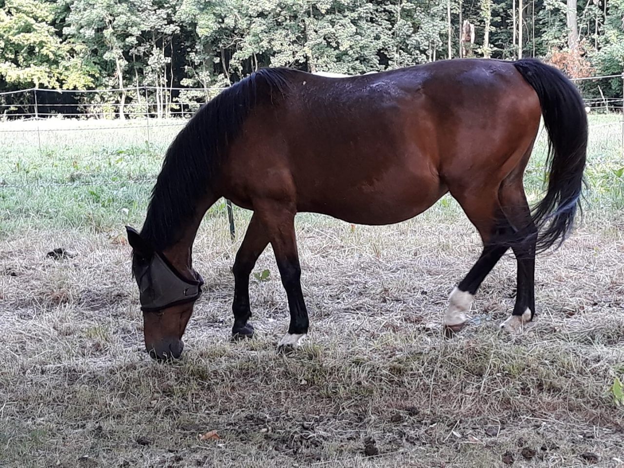 Ma jument n'avait jamais fait de fourbure , et meme en Normandie , elle vient de passer le printemps sans pb. (mais je crois qu'elle mange moins vite à cause de ses dents )Je la trouve bien (elle est à la retraite depuis 8 ans déjà , donc elle est toute deformée , mais belle. Photo prise debut juillet : ![]() |