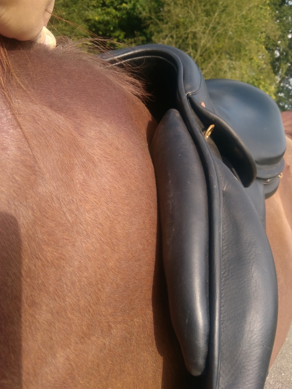 | Dire merci | Alors le soucis des poils blancs c'est que peut être qu'il n'y a l'heure actuel plus de soucis. Ca sort environ entre 2 et 6 mois après la sur-pression De toute façon si tu es en contact avec le sellier personne ne pourra dire ce qu'il faut faire c'est à lui de trouver la clé pour rétablir la situation si il y a encore un soucis. Le tapis anti glisse tu le mettais à même la peau? Raison particulière? Tes sanglons sont pas supers bien orientés non plus il y a sans doute à améliorer de ce côté là. Tu montes en suspension ? enfin bref tout ça via forum ça me parait compliqué juste que Darroze vienne voir le cheval et fasse ce qu'il faut et voilà ![]() |