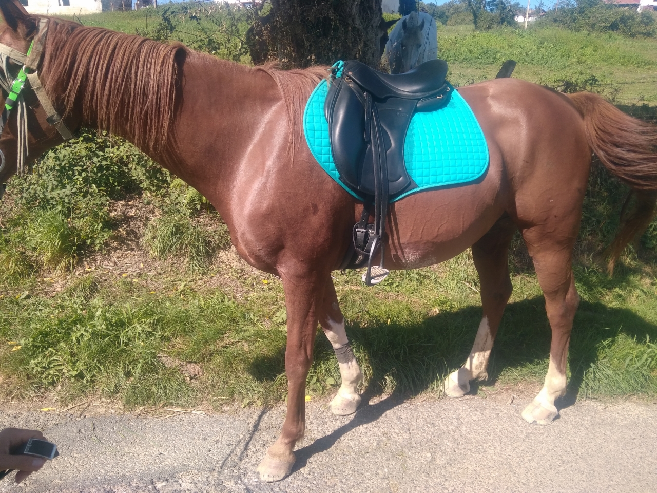 | Dire merci | Je ne savais pas que ça venait plus tard les poils blancs, merci pour l infos Oui on est en contact, je lui amènerai kesdjan quand sa blessure sera remise Non je mettais entre le tapis et la selle, car au début le tapis reculé un peu j ai mis ça et j avoue que dans ma tête ça faisait un peu amortisseur aussi donc j ai gardé car pas très épais Je monte les deux je dirais je fais de la ballade rando mais aussi de petites courses donc je monte assise et en suspension en fait |