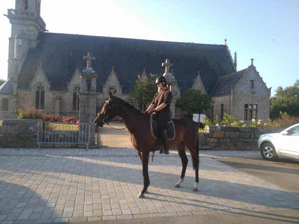 | Dire merci | Oui, il est débouré, c'est un réformé. ![]() Le réformé idéal en fait, puisque juste débourré au final. A deux ans, il n'était pas prêt et il est resté au pré pour n'être débourré que ce printemps-ci. Il n'a pas spécialement brillé à l'entrainement (et quand je vois son mental "philosophe" je ne m'en étonne pas... si ça se trouve il est assez rapide, mais il n'a pas du voir l'intérêt de se secouer la couenne ) et a été réformé très vite, donc il n'a pas fait grand chose et absolument pas couru. Il s'est retrouvé chez un jeune cavalier qui bosse dans une grosse écurie de CSO et qui fait un peu de reconversion de réformés pour son compte et c'est comme ça que je suis tombée dessus.A l'essai il a été top, en carrière comme pour le petit tour dehors, et à la visite véto, il a tout fait gentiment avec énormément de bonne volonté. Et du coup, je le destine à être le successeur de Bellinda. Loisir, balade essentiellement, mais aussi autant que je pourrais, prendre des cours et évoluer. C'est pour ça que je voulais un cheval dans le type de Bellinda, polyvalent/sport. Et actuellement, dans mon budget, faut être clair, j'avais pas trop le choix : poulain ou réformé. Poulain, c'était exclu donc... Heureusement, j'aime vraiment bien les pur-sang, et pour trouver un cheval dans le style de Belline, c'était quand même la race dans lequel j'avais le plus de chance de taper dans le mille avec l'anglo. Et peut-être certains DSA. Donc voilà, le modèle, c'est exactement ce que je cherchais et pour le moment le mental a l'air top. le reste repose sur mes épaules. Donc comme c'est un tout jeune, on va prendre le temps de faire connaissance en le laissant grandir, et faisant de la balade et du travail à pied. peut-être quelques cours pour être sûre de rester sur de bonnes bases, mais rien de trop intensif pour le moment. Depuis qu'il est là, je le sors à pied en balade, je l'habitue à la maison, à être séparé des autres (il est top de ce côté là, très indépendant), et hier on a attaqué la longe (ça il ne connaissait pas, ça a été le moment un peu folklo de la visite véto d'ailleurs ).Quand il aura des hipposandales, on passera aux balades montées. ![]() ![]() Et lors de l'essai : ![]() Et le lendemain de son arrivée, j'ai fait un petit tour dessus après avoir fait la première balade en main le matin, histoire de tout de suite nous mettre dans le bain tous les deux: ![]() |