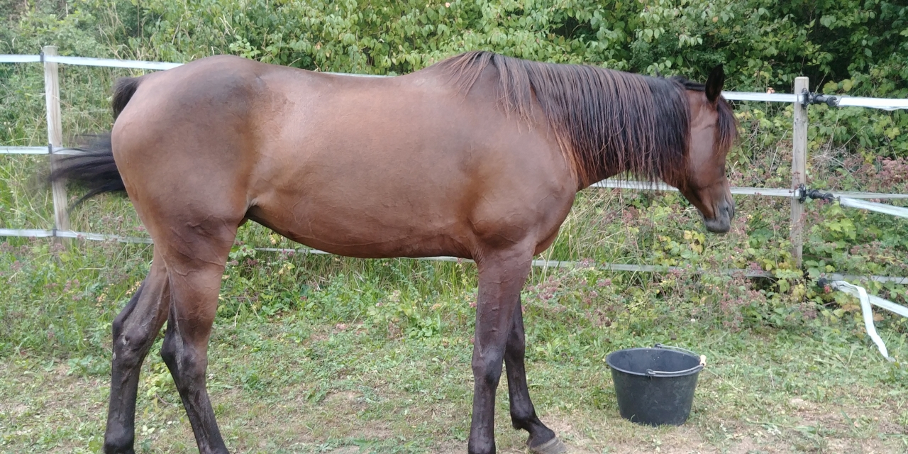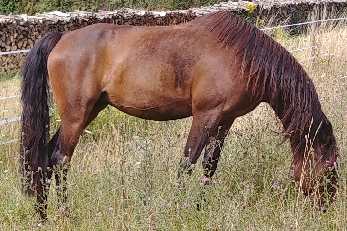 DéconnectéDire merci | Je la sors en extérieur deux fois par semaine seulement, 15km à chaque sortie (1h - 1h30), le reste du temps elle est en liberté au pré. Je fais de l'équitation de loisirs depuis des années, je me débrouille mais j'ai pas un top niveau pour tout ce qui concerne le dressage etc alors possible que je ne lui muscle pas assez le dos. |