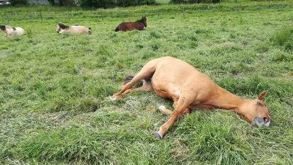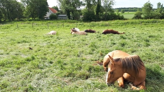 | Dire merci | Pas de bouffe, oui, c'est sûrement l'élément essentiel pour assurer la paix. Chevaux en retraite à 16ans, oui: chevaux de concours plus assez performants ou lassés, proprios que la balade ou d'autres activités de loisir n'intéressent pas. Ils sont soignés, visités, rien à dire... Mais ils ne bougent plus de leur pré. |
