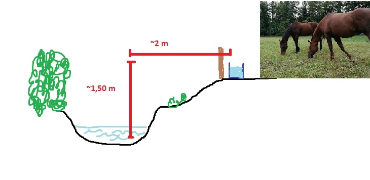 | Dire merci | Je découvre les joies des chevaux au pré l'hiver sans électricité Mon "souci" actuel est le remplissage de la bassine d'eau. Le contexte : chevaux au pré, ruisseau qui délimite un coté et qui sert de ressource en eau (vu avec le proprio, je peux me servir dedans pour 2 chevaux, juste pas le droit de modifier les berges), pas d'électricité de ce coté du pré. Je ne suis pas chez moi donc pas possible de faire de travaux, pas possible non plus de récupérer l'eau du toit de l'abri. Et autre contrainte : un des deux a été traumatisé avec un abreuvoir auto (électricité dessus) donc pas de truc où le cheval pompe avec son nez. Mon unique source d'eau est donc le ruisseau, et je remplis tous les jours, seau par seau, un bac qui sert d'abreuvoir. Le coté positif c'est que ça me fait mon petit work out of the day, mais bon, un pas un peu moins assuré qu'un autre et je pourrais vite finir le c** dns l'eau Je me demandais s'il était possible de fabriquer un système pour pomper un peu d'eau, un truc à manivelle, ou un truc qui fonctionne avec le courant de l'eau, ou je sais pas... J'ai vu des vidéos de bélier hydraulique mais je suis pas convaincue que c'est ce qui me faut. Je veux bien faire des efforts, c'est pas le problème, je voudrais juste éviter de descendre et remonter dans le ruisseau 10 fois de suite car avec la boue ça glisse. Des idées pour me simplifier la tâche à moindre coût ? Le ruisseau coule en bas du pré : ![]() |