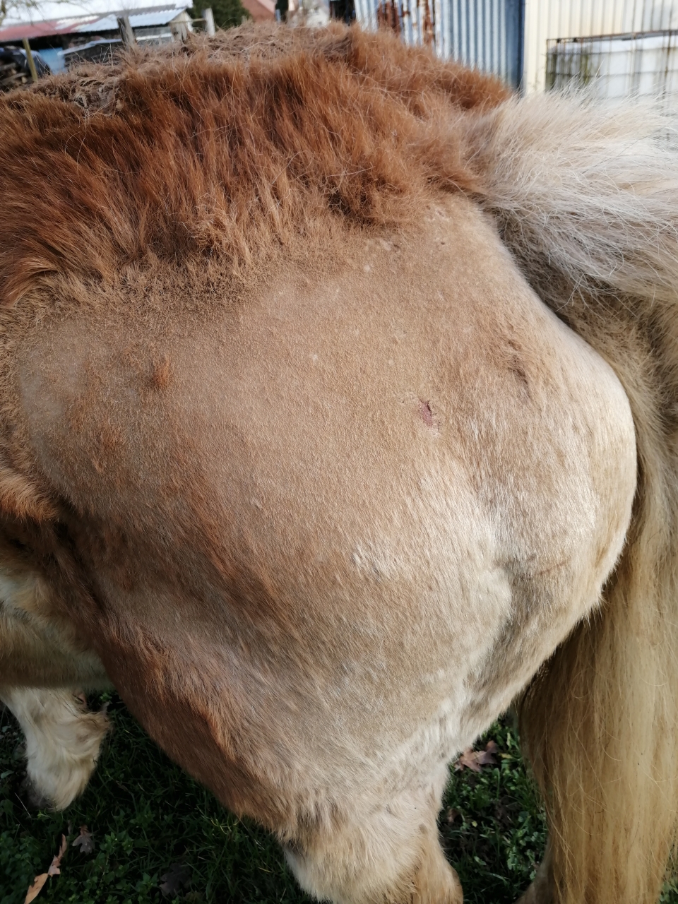 | Dire merci | Bonjour à tous, J'écris ce post parce que ma jument perd des plaques de poils et se gratte à différents endroits. Elle a été traité avec des anti-inflammatoires (ou antibiotiques ? J'ai un doute... 🤔 . Le véto a prélevé un échantillon, a fait analyser mais rien n'en ressort.Je vous joint des photos. Merci d'avance pour vos réponses. ![]() ![]() ![]() ![]() ![]() |