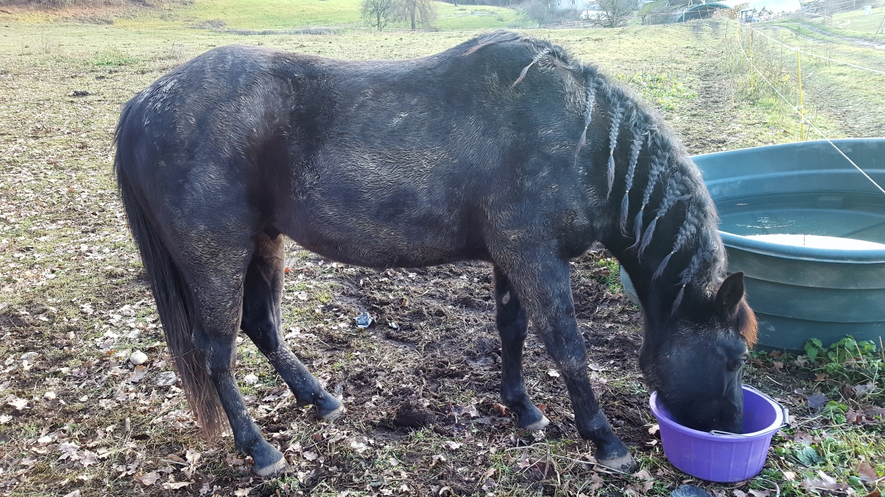 DéconnectéDire merci | lsan Justement j’avais penser à essayer de cassé la terre avec mes mains et ensuite lui attacher mais je ne sais pas si c’est une bonne idée avec le froid et la pluie (il a une couverture imperméable 0g quand il pleut) et je ne sais pas comment je dois lui attacher la crinière... |
