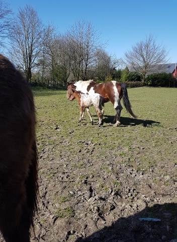 DéconnectéDire merci | pour classer/retrouver mes photos elles s'appelle Ciara pcq elle est née juste après la tempête. Cette bibounette n'est pas à moi, elle retournera d'où elle vient d'ici peu donc je ne donne pas de nom et je ne manipule pas. Que ferais-je d'un poulain qui risque fortement de me survivre (ou que je ne sois vraiment plus en état de m'en occuper). Je lui ai donné une chance et je croise les doigts pour qu'elle soit vendue et aie une belle vie. J'ai une autre jument (à moi celle là, un retour) dont je crains terriblement qu'elle soit pleine aussi, l'adoptant jure ses grands dieux que non mais quand je vois dans quel état je l'ai récupérée l'année passée je ne suis vraiment pas persuadée qu'elle aie été gérée en 'bon père de famille' et qu'ils n'aient pas tenté une saillie malgré l'interdiction par contrat ... (une ibérique noire, c'est tentant) ou alors elle est vraiment très grosse ... (poulinière depuis des années parfois ça prend tout dans le ventre et on attend le poulain pendant 3 ans comme avec ma chère feu 53) |