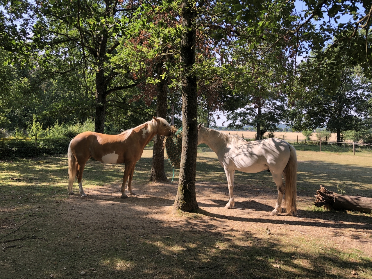 | Dire merci | Je n'y connais rien du tout mais il y a plus haut évoqué la cohabitation cheval+poney sur cette surface ... Si c'est pour ma retraite de Story, sachant qu'ils s'entendent bien avec Iwell, ve serait possible d'avoir les deux sur une telle surface et ta relève en pension ? Tu as l'air de dire que ce serait temporaire, au vu de vos projets avec ton mari d'avoir des terres à proximité... Encore une fois je n'y connais rien, mais est-ce que ce serait envisageable ? Avec sorties en main peut-être pour les deux quadrupèdes chez toi ? |
