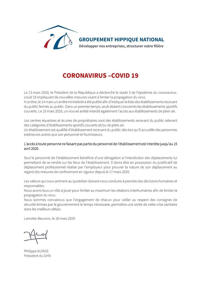 Chevaux et coronavirus
