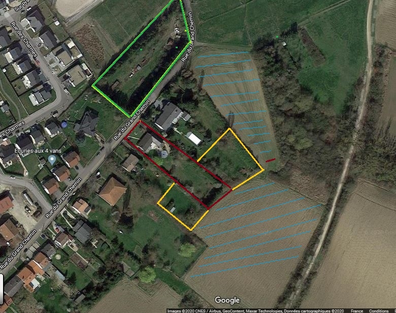 | Dire merci | Bonjour à tous! Je viens vers vous pour un avis sur un projet qui me trotte dans la tête depuis très longtemps (et avec le confinement et le travail ds le jardin +++, je ne pense qu'à ramener les juments chez moi!) J'ai comme bcp le rêve de ramener les juments. J'ai eu la chance, ado, d'avoir les chevaux à la maison, dc je sais ce que ça implique. Pour vous situer, voici ma maison (25 ares en tt ) en rouge. En bleu hachuré, c'est le terrain (blé) de l'agriculteur, qui ne veut ni louer ni vendre, j'avais été le voir il y a 4ans, faut que je retourne qd meme pour discuter un peu ![]() En jaune c'est mon délire du moment, racheter les fonds de jardin des voisins (oui je suis désespérée) et en vert, c'est 50 ares qui peuvent être intéressants! Et plus haut, c'est le centre equestre vous pouvez apercevoir des paddocks. Mais malheureusement leurs formules ne me correspondent pas du tout :'( J'ai proposé d'acheter le terrain vert, mais c'est en zone NB,et ça sera peut etre, dans le futur, constructible! Donc les proprios ne veulent pas vendre... Voila le point de départ! Pas très fameux... ![]() Actuellement ma jument Flicka est chez mes parents, a 45 minutes de chez moi. Et elle peut y rester tant que je ne trouve pas de pension (et c'est très galère ds mon coin (Moselle)) D'ou ma question et mon projet sur ce terrain vert... Il est actuellement ds un piteux état. Pleins de ronces, de mauvaises herbres, bcp de sapins, et un dépotoir!!! des abris en toles qui tombent en ruine, des carcasses de bagnoles et pas mal de tout venant... confer photos.J'ai vu hier la proprio et j'ai émis l'idée d'un arrangement ou j'occupe le terrain et je l'entretiens...J'aimerais connaitre vos avis sur un tel arrangement. Ce qui est intéressant ds mon cas c'est que je pourrais laisser flicka chez mes parents en hiver, et la prendre avec deux minis shet la belle saison ds les 50 ares (quitte a la ramener chez mes parents qd plus d'herbe) l'abris selon mon mari qui bosse ds le batiment est réparable facilement donc juste cloturer + gros boulot de remise en état. Qu'en pensez-vous? intéressant pour moi en sachant que ça peut être constructible ds 2/5 10 ou encore 20 ans? Est ce que les proprios peuvent trouver ça intéressant de me le prêter contre "entretien" ou dois-je m'attendre a une location? De cb du coup? Pas envie de faire un gros investissement et de devoir partir d'ici 2ans ![]() Je voulais votre avis car je suis en plein dedans avec mes idées de fou et vous allez m'aider à garder les pieds sur terre... donc vraiment tout avis est bon à prendre! Mon mari n'en peut deja plus de moi ![]() ![]() ![]() ![]() ![]() ![]() J'sais pas si ça rend en photos mais il y a pas mal de boulot, si si |