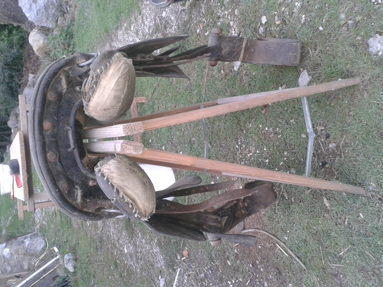 | Dire merci | Alors voilà : Mon voisin range ses caves et m'a proposer cette selle de rando ou travail ancienne, cuir pas trop catastrophique ( un peut sec mais pas raide ), matelassures tissus et remplies de crins à restaurer ( déchirure mais pas par les souris il me semble ). Etriers 100% en cuir. Si je la prend, c'est juste pour de la déco mais côté restauration, je ne me rend pas compte de ce qu'il à a faire dessus pour qu'elle soit belle pour la future déco au Bivouac des Princes... Si c'est intéressant et pas trop cher, j'aimerais bien la faire rénover par un sellier juste pour l'esthétique... Qui pourrai me donner des conseils, des idées ? Merci d'avance ! Désolée, j'arrive pas à mettre les photos dans le bon sens... ![]() ![]() ![]() |
