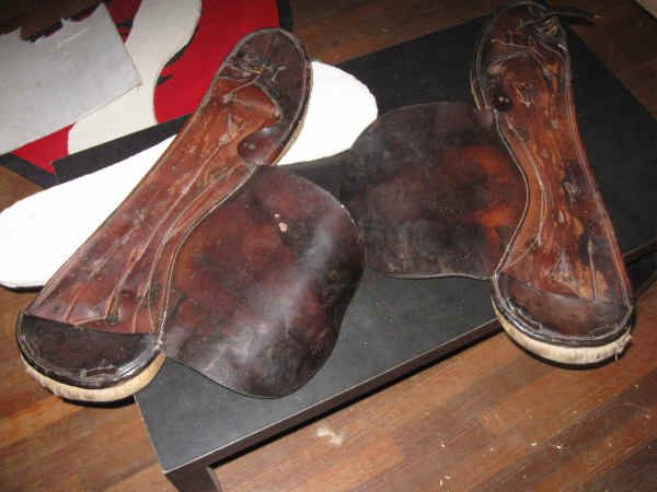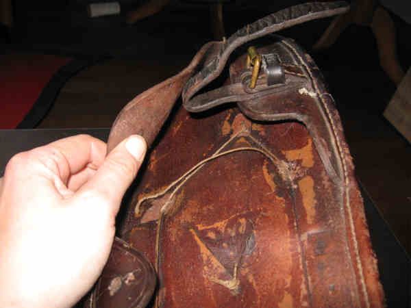 DéconnectéDire merci | sur la mienne il n'y avait pas de boucles mais des "poches" sur les matelassures en feutre dans lesquelles s'emboitaient les bouts des bandes d'arçon.![]() l'arçon bois s'enfonce entre le capuchon en cuir et le feutre |