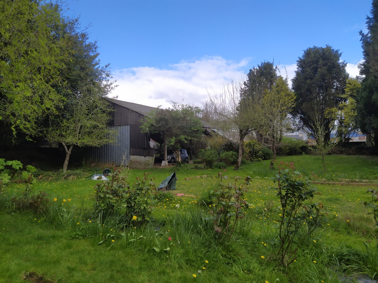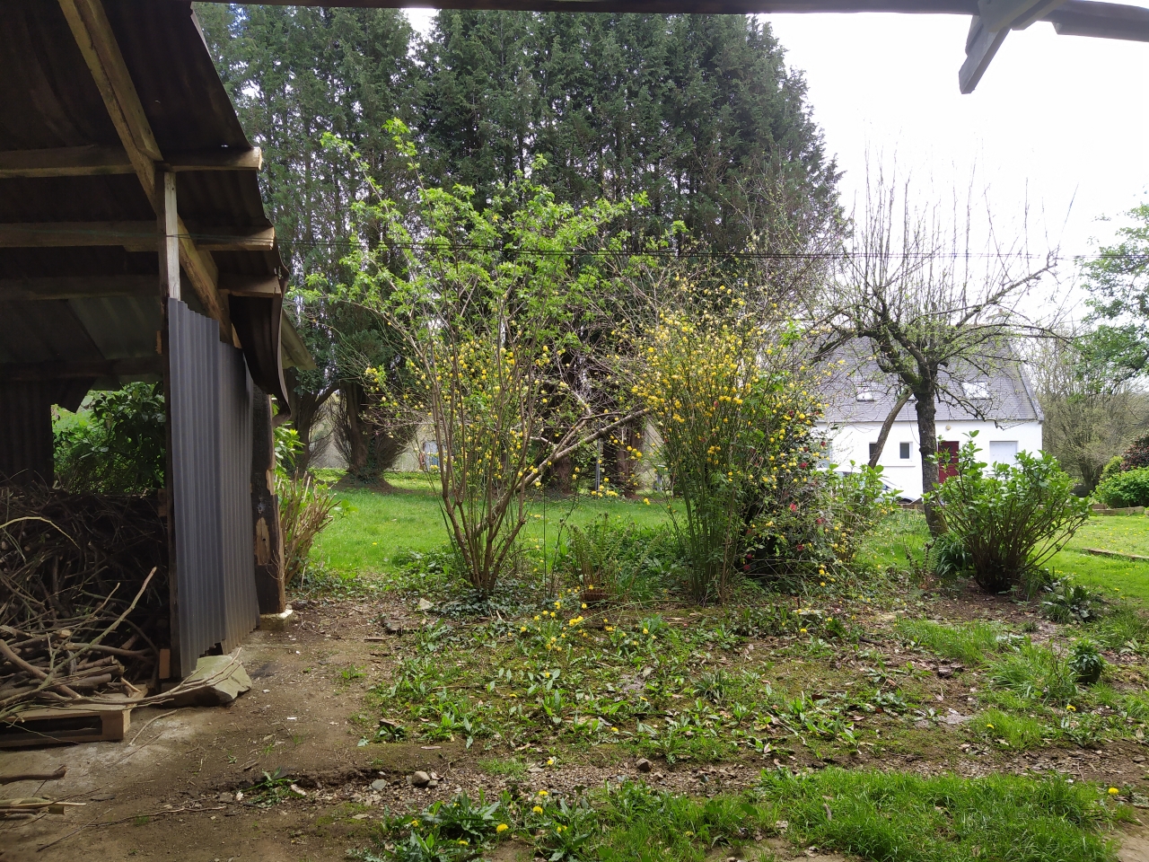 | Dire merci | Sur la dernière photo, on peut penser que le toit descend jusqu'à un mur à droite ( là où il y a plein de tôles à évacuer) . Ça n'est pas le cas. Il y a 3M entre la fin du toit et le mur d'une exploitation agricole ( stabulation des vaches) ![]() Vue du Sud ( je suis placée devant la végétation d'ornement) ![]() Et sortie vers le sud avec végétation à enlever ![]() |