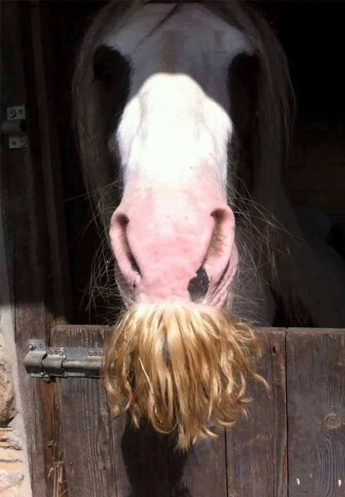 DéconnectéDire merci | Je n'aurai pas trouvé non plus la précédente énigme. Pour la nouvelle, c'est un cheval avec moustaches Mais je ne me souviens plus si c'est spécifique à une race. |