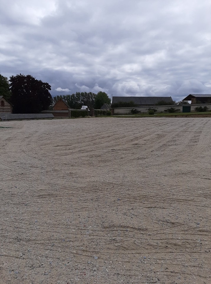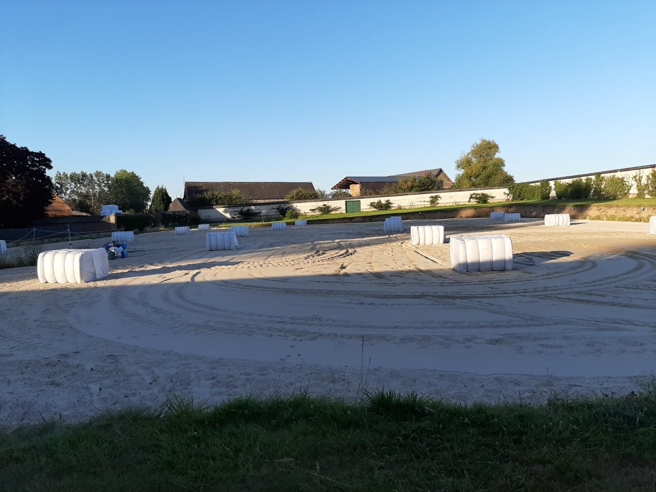 | Dire merci | Voila notre retour d'experience pour ceux/celles que cela interesse . Nous l'avons fait! Rappel : carriere de 40x60m , avec 10 cmde sable de riviere. Apres avoir fait faire de multiples devis , j'ai trouvé un fournisseur prés de chez nous à un tarif défiant toute concurrence. Reception de 6 tonnes de fibres par ballots de 300 kgs (2,5 kgs par m2) ![]() Installation des ballots sur la carriere ![]() Etalage de la fibre (+arrosage en continu afin que la fibre se mélange plus facilement avec le sable) ![]() Passage d'un rotovator pour mélanger ![]() Passage d'un rouleau pour retasser le tout ![]() Et on peut enfin monter et c'est le reve ! les pieds des chevaux n'enfoncent plus , il y a une vrai sensation d'amorti , c'est vraiment super ! ![]() ![]() |