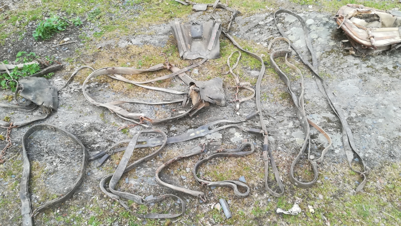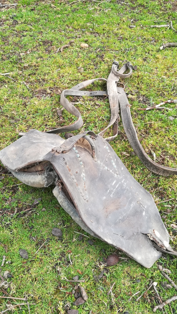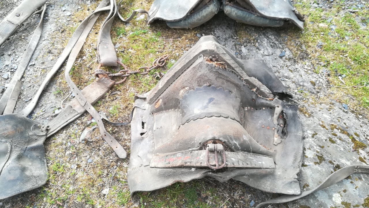 , j'aurais aimé avoir de votre aide pour en savoir un peu plus sur tous ça , c'est à dire, d'après ce que j'ai vu, plusieurs selles, 2 colliers et divers harnachements ( le tout exclusivement en cuir je pense) qui devaient servir pour travailler et d'autres non ( je précise que je n'ai pas tout pris en photo). Voici mes quelques questions :