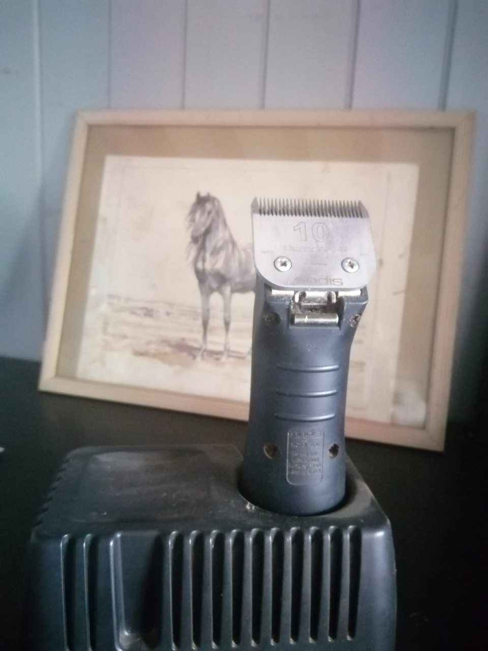 | Dire merci | Alors, non. Les tondeuses pour chevaux n'ont pas ce qu'on peut appeler des sabots, mais des lames ou têtes de coupe. Elles sont vissées directement sur la tondeuse. Tu as plusieurs tailles différentes, plus le nombre est grand, plus ça taille court. Un #7 va être plus long qu'un #10 qui va être plus long qu'un #40. Un exemple avec la mienne, qui est une tondeuse de finition (pas faite pour tondre tout le corps, donc, même si je le fais quand même au printemps ):![]() N'espère pas réussir à tondre un cob poilu avec une tondeuse pour chien ou humain. Ou alors oui, mais une seule fois Message édité le 17/06/20 à 21:07 |