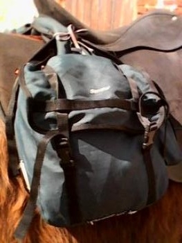 | Dire merci | les poches des tapis sont bien trop petites. sacoches sans hésiter. si bien ajusté a la selle , on peut récupérer des objets sans descendre du cheval et sans l'arreter.. si pas d'anneau a la selle, coudre une lanniere qui passe sur le troussequin en plus du pont des sacoches qui lui reste derriére.. fixer une fine sangle au bas des sacoches au centre et la relié a la sangle de la selle. |