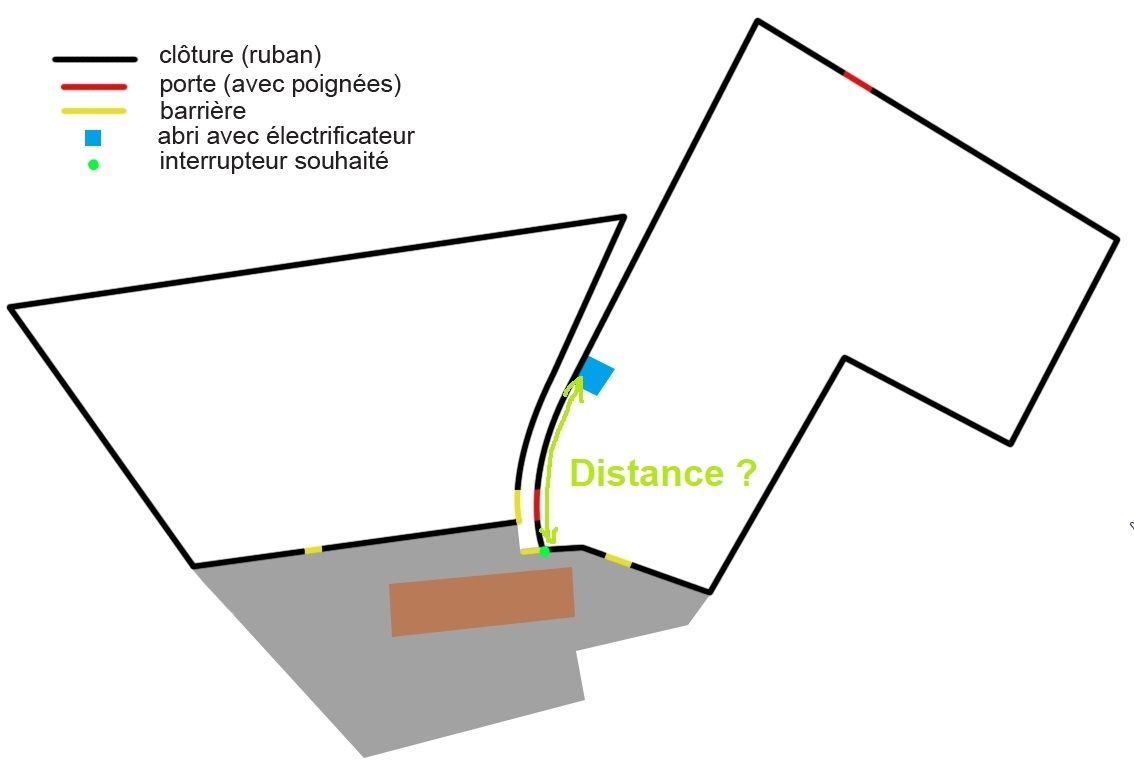 | Dire merci | Quelle est la distance, le long de la clôture, entre l'endroit où est posé ton électrificateur et l'endroit où tu veux ton interrupteur ?![]() |
