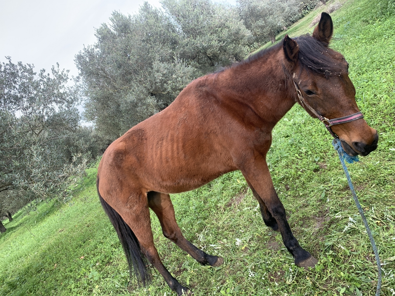 | Dire merci | Tunisie ou pas, les conseils donnés sont quand même utiles. Dans tous les cas, arrêtes le travail, cette pauvre bête n’est pas en état de travailler et encore moins de porter un.e cavalier.e, ni de porter un poulain qui va tirer sur son organisme. Bref il y a urgence de lui donner du foin et/ou de l’herbe à volonté et de lui faire voir un vétérinaire. |
