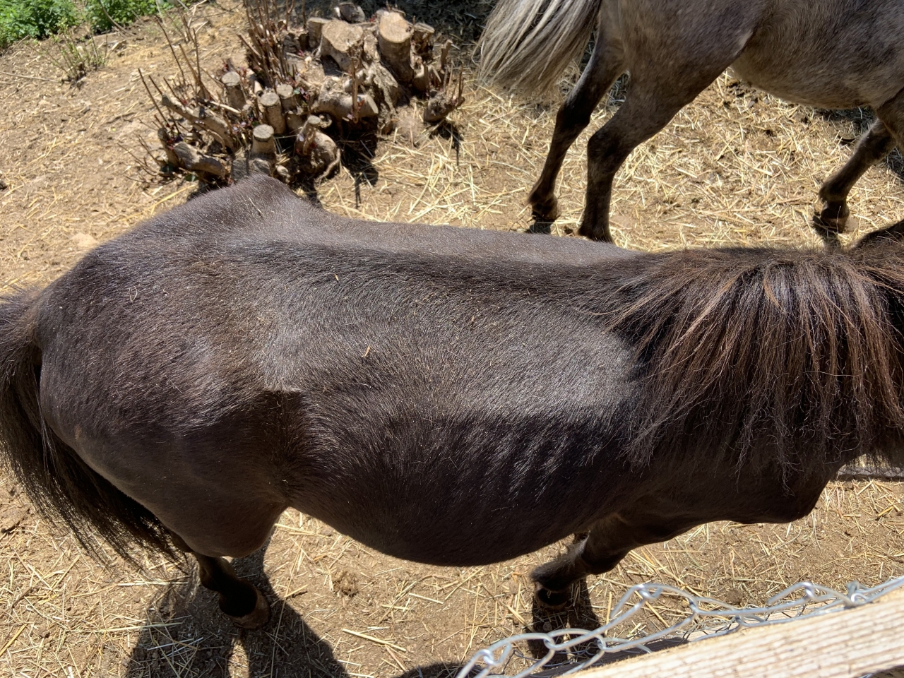 | Dire merci | Autant le mien n'est jamais arrivé à ce stade, autant la cavalerie du club ne laissait pas de doutes : un poney du club l'été passé : ![]() Un autre : ![]() Il paraît que c'est à cause du Covid les chevaux n'avaient plus l'habitude de travailler quand ça a rouvert et ils ont "un peu" perdu du poids......... |