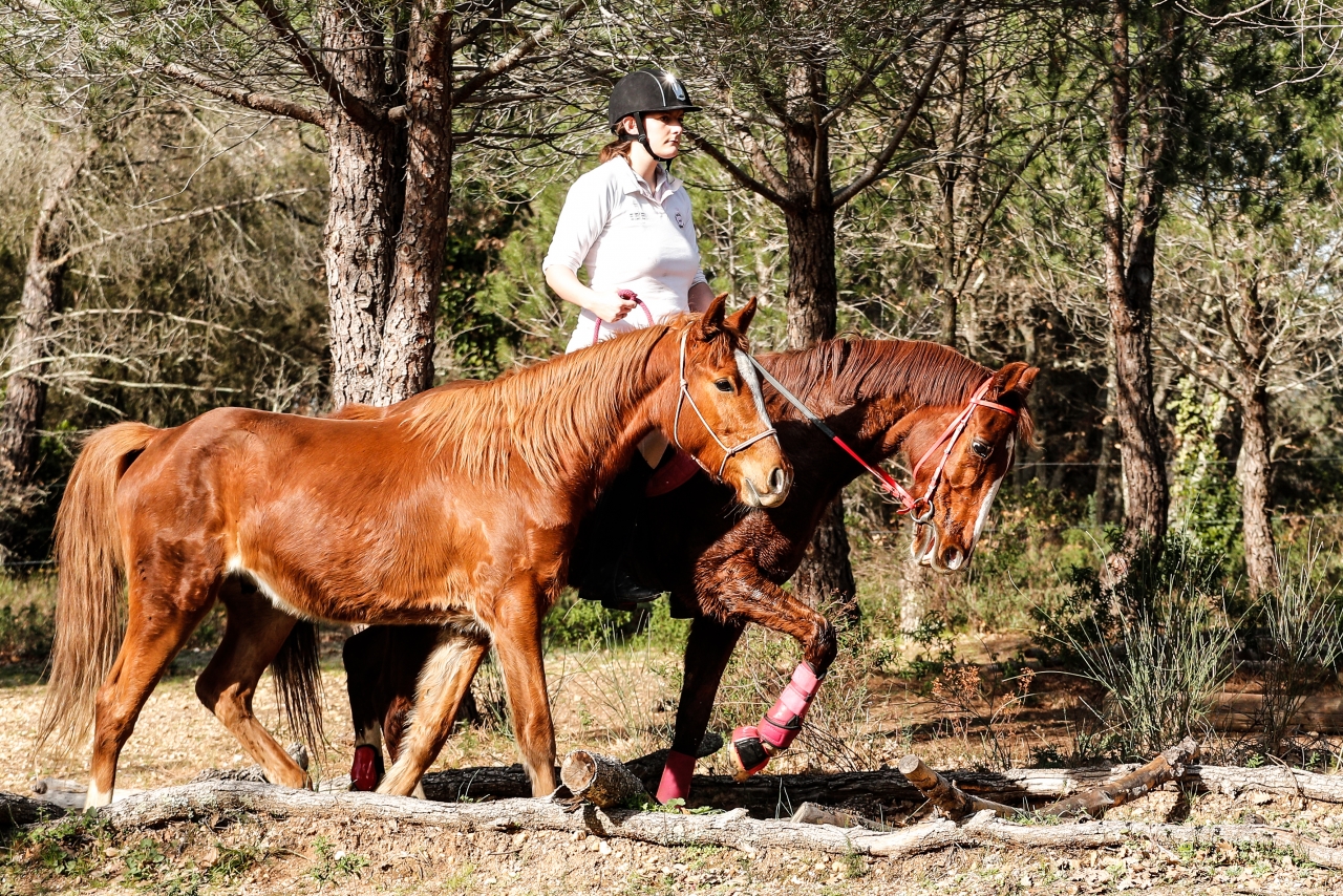| Dire merci | Je pratique beaucoup le dextre (genre beaucoup, voyage et au quotidien), à 2 les juments sont beaucoup plus courageuses que seules. Jamais eu de cas où les 2 s'emballent, y'en a tjs au moins une sur les 2 qui a le cerveau qui se reconnecte vite. Lélan de panique est vraiment plus rare. ca m'est arrivé mais en général l'une des 2 stoppe très vite et comme elles fonctionnent en duo... Jamais eu de soucis je suis toujours partie sans préparation particulière... faut surtout être logique et progressif et pas s'imaginer qu'on va galoper à fond direct ^^. 3m50 de longe et une selle de travail avec corne... en selle anglaise si vous prenez un poney un peu costaud et pas un arabe en dextre ya forcément un moment où il tirera un peu... et sans pommeau devant je ne donne pas cher de la résistance du cavalier... Donc une selle adaptée surtout. Mais un cheval un peu sanguin et pas bourrin cest beaucoup plus simple quun froid. |