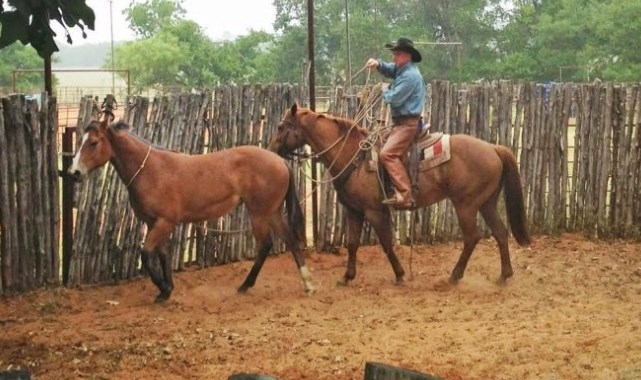 | Dire merci | Le tour mort autours de la corne cest hyper dangereux. Ne pas faire. Sauf très ponctuellement pour plus de force mais lancer des allures avec un cheval attaché à l'autre cest hyper dangereux (la longe ne va pas filer si facilement avec un tour mort même si ce n'est pas un vrai noeud). |