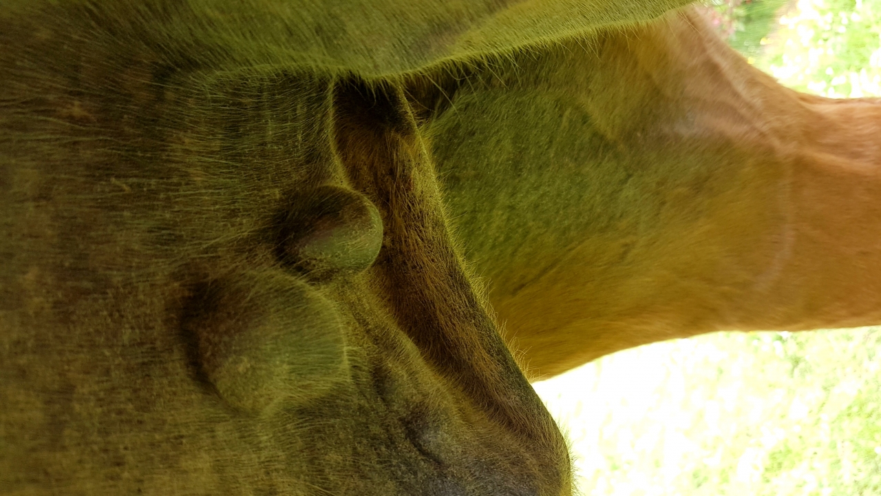 | Dire merci | C'est très bien d'avoir coupé les crins, ils vivent bien sans crins effectivement, c'est pas un problème heureusement (carodadou gère une shet avec syndrome queue de cheval.... donc plus c'est un moignon mieux c'est) Tu devrais peut être demander un avis en clinique type Equitom vu l'emplacement gênant des sarcoides..... Ils répondent volontiers sur photos. |