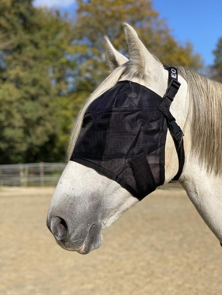 | Dire merci | Au pré je ne mets que des masques avec arceau sinon le filet frotte les yeux et c'est la cata. En 5 ans jamais eu de souci à part des masques perdus que je dois chercher dans le pré😁 |