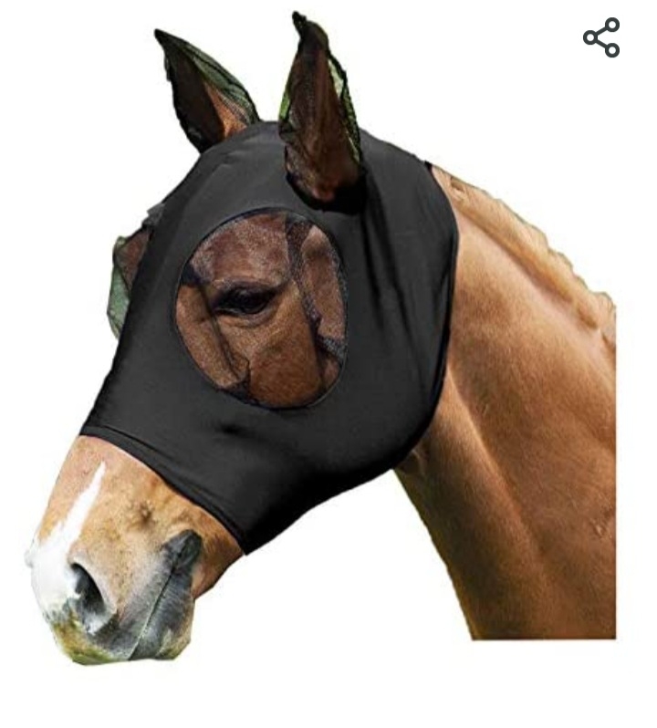 | Dire merci | Ce masque lycra me plaisait car discret et ne devrait pas gêner avec le filet. Même s'il tient un peu chaud, il ne le gardera pas très longtemps. S'il taille mal ce sera par contre plus problématique. J'ai qd même passé commande. Sinon au pre je suis fan des Rambo, j'en ai pris un pour MON cheval, 😉 mais lui c'est pour les insectes. ![]() |