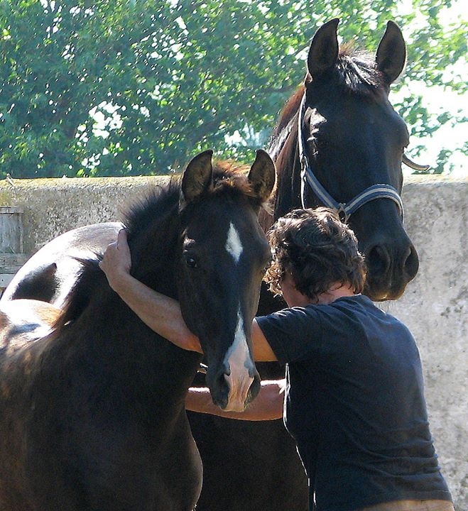 | Dire merci | Ma relève, c’est lui qui m’a choisie je pensais gentiment à la relève de ma jument très spéciale avec qui j’avais une relation unique, je posais peu à peu des critères, plutôt comme Takhan, ce que je ne veux plus pour le nouveau quand il a débarqué dans ma vie, petit cul tout moche de 2 mois. On était en pension dans un élevage, je l’ai vu grandir puis ça s’est imposé que ça serait lui. Il répond aux critères que j’avais posés mais objectivement ça n’est pas ça qui a déterminé mon choix.Ma jument est morte brusquement quand il avait 6 ans, notre relation est totalement différente mais d’égale valeur. Il me comble autant que le faisait ma jument. Je rejoins les autres témoignages que c’était très important que je puisse faire sa connaissance et commencer à construire notre relation pendant que ma jument était encore là. Je ne sais pas si j’aurais été capable d’essayer des chevaux en étant en deuil. Une chose importante aussi, c’est de garder à l’esprit qu’une relation se construit à deux. On y met chacun autant l’un que l’autre. |
