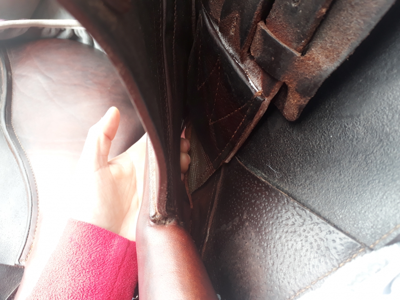 | Dire merci | Bonjour ! En nettoyant à fond ma selle la dernière fois, j'ai vu un jour entre les matelassures et le reste de selle (arcon je suppose?) J'essaye de me renseigner sur le lavage des selles pour savoir si c'est normal ou non. . On parle généralement de l'avant des panneaux, et de l'arrière (côté extérieur) à ce niveau là tout est ok. Vers le milieu du panneau (place des sanglons on va dire) il y a un gros jour . N'ayant jamais fait attention avant je me demandais si c'était normal ? Ou si c'est censé être cousu ou collé tout du long ? ![]() Je sais pas si j arrive à bien expliquer lol Je mets quelques photos Si quelqu'un a un avis la dessus, savoir si je dois la faire réparer |