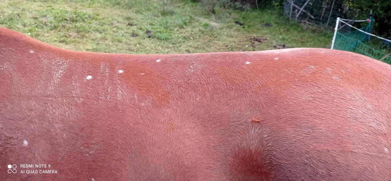 | Dire merci | Chaque année dans la nuit du 15aout mon haflinger devient tout tacheté de blancs...elles disparaissent durant l'hiver et réapparaissent chaque année à partir du 15 août en une ou deux nuits.....je n'ai pas encore percé le mystère ![]() |