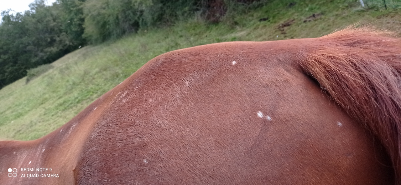 | Dire merci | Ma jument est alezan sabino. tous les ans j'ai de nouvelles petites tâches blanches qui apparaissent, n'importe où, comme ça |