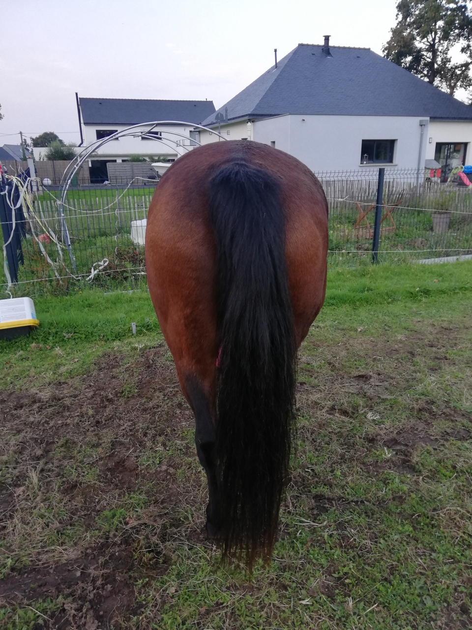 | Dire merci | Il ne me semble pas avoir parlé de fonte musculaire, elle a perdu son embonpoint, en fait elle a perdu sa surcharge pondérale mais elle n'a pas particulièrement fondu musculairement (elle a toujours son cucul bien rond ). Les pieds pourris s'expliquent très bien avec l'été qu'on a eu, le podologue m'a dit que beaucoup de chevaux, quel que soit l'âge, étaient dans cet état. Mais aucune boiterie à signaler ou manifestation d'inconfort en dehors des passages sur les petits cailloux. Pour connaitre quelqu'un dont le cheval a un cushing, je ne pense sincèrement par qu'elle soit dans ce cas mais je vais quand même surveiller. Je ferai une photo d'elle ce soir pour que vous me disiez ce que vous en pensez. En dehors de cet ensellement, je la trouve plutôt pas mal, son poil est beau et brillant, il me semble qu'avec cushing c'est plutôt hirsute et terne, non ? |