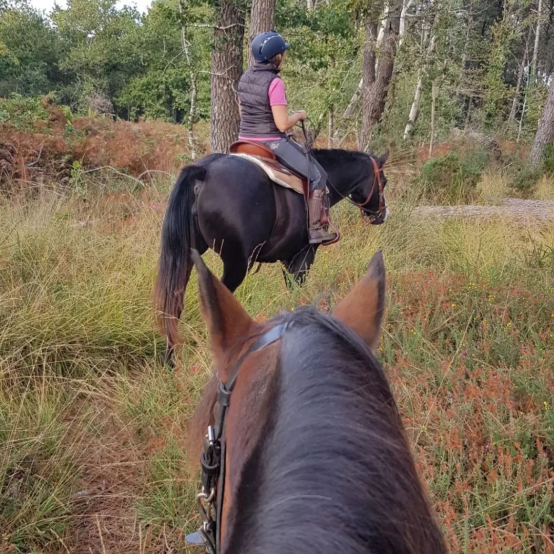 | Dire merci | colomba , voici 3 photos pas géniales de Dakota cet été, mais elle est extrêmement compliquée à prendre en photo car elle vient systématiquement mettre son nez sur le téléphone quand je veux la prendre... je n'ai donc que des photos montées et le souci, c'est que mon autre jument bouge beaucoup, bref... en balade, toujours devant, rênes longues tranquilou ![]() avec ma fille, crinière rasée à cause de la dermite de cet été ![]() Admirez ce beau cucul américain ![]() |