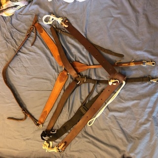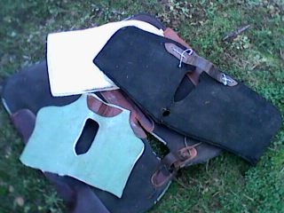 | Dire merci | Ok, donc deux néoprenes à scratch, pas trop abimées mais on voit tout de même la contrainte sur la partie interne avec les coudes des chevaux. ce sont des néo à scratch ce qui permetde séparer les deux parties pour le lavage. Celles en néo (formes de boudins , aérés), chez les pros, bien que rincées après chaque usage finissaient bouffées par la sueur! (au niveau des coudes) les sangles arrières servent à tenir la selle qu'on tracte en face où que l'on tire derrière ou bien que l'on tienne une charge (bât ) ou accroche des animaux à la selle (bovins où chevaux en ceinture autour du cheval). En wrangling , (n'en déplaise), en haute montagne où en plaine la "back cinch" permet une meilleur stabilité ou la capacité de prendre des chevaux en main (vive la corne) quel qu'en soit leur nombre ,ou bonne volonté.. (BountyB , j'attendais que tu me relance!! ) |