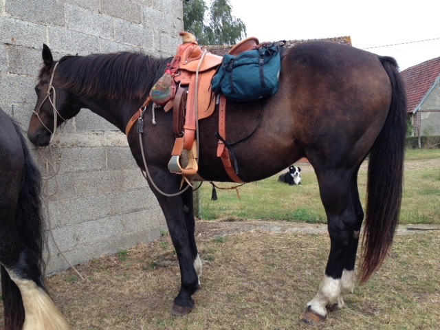 | Dire merci | Bonjour, je poste ici parce que le forum western est un peu désert. Donc voilà pour la nouvelle année j'aimerais acheter un nouveau pad et une nouvelle sangle. En effet mon équipement est vieux et j'aimerais bien trouver "mieux", alors vos conseils sont les bienvenus. Alors déjà il faut savoir que ma selle n'est pas idéalement adaptée à ma jument. Elle est un peu trop large devant. Sauf que j'ai essayé des dizaines d'autres selles et c'est "la moins pire" que j'ai trouvée on va dire. A savoir que ma jument fait un gros yoyo de poids dans l'année : elle est très fine en fin d'hiver et rondouillette en fin d'été. J'ai essayé les tapis de feutre épais, le feutre fin ergonomique, et finalement c'est encore mon simple tapis doublure mouton qui semble aller le mieux. Vu que la selle est un peu grande, j'aimerais donc opter pour un tapis épais. C'est quoi qui se fait de bien dans les pad actuellement? J'ai vu des modèles en matériau type "sympatex", c'est intéressant? D'ailleurs en parlant matériau, pour la sangle je pensais prendre la néoprène Pro Choice. Actuellement j'ai une bête sangle mouton en bout de course. En plus depuis l'année passée je suis amenée à aller à la plage avec ma jument, et le sable se prend dans le mouton et sur une rando de 2 jours elle a fini par blesser. Vous avez un magasin de vente en ligne à recommander? Une petite photo où on voit un peu le matos actuel (là la juju est en poids "de forme" de mi-été). ![]() |