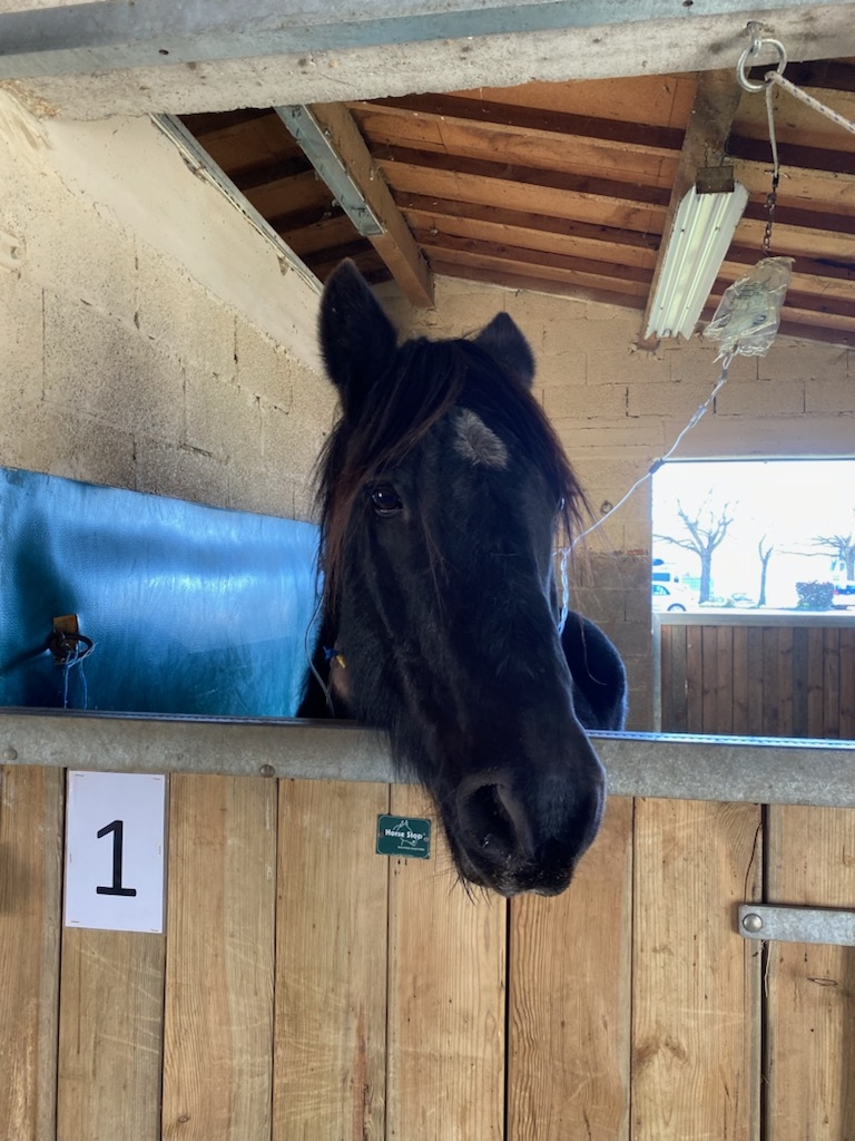 | Dire merci | ![]() Un peu floue celle là... Pas évident, j'ai un téléphone pas terrible pour les photos, et il fait assez sombre dans l'écurie. Il n'a pas mauvaise tête, mais il n'a pas la tête habituelle pour autant. |