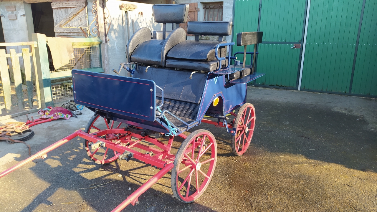 | Dire merci | Alors ,pour moi ce qui compte pour une voiture. L'état et la qualité de l'ensemble et les différentes options. brancard+timon, roues à bandes , frein de tourelle suspenssion pneumatiques freins à disques, siege meneur ,porte fouet pare crottin gardes boues, etc etc et polyvalence taille engin ,voir changement de voies reglages brancards ,pour la revente... |
