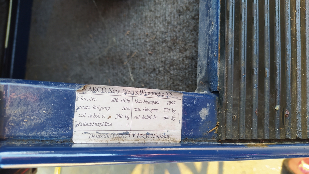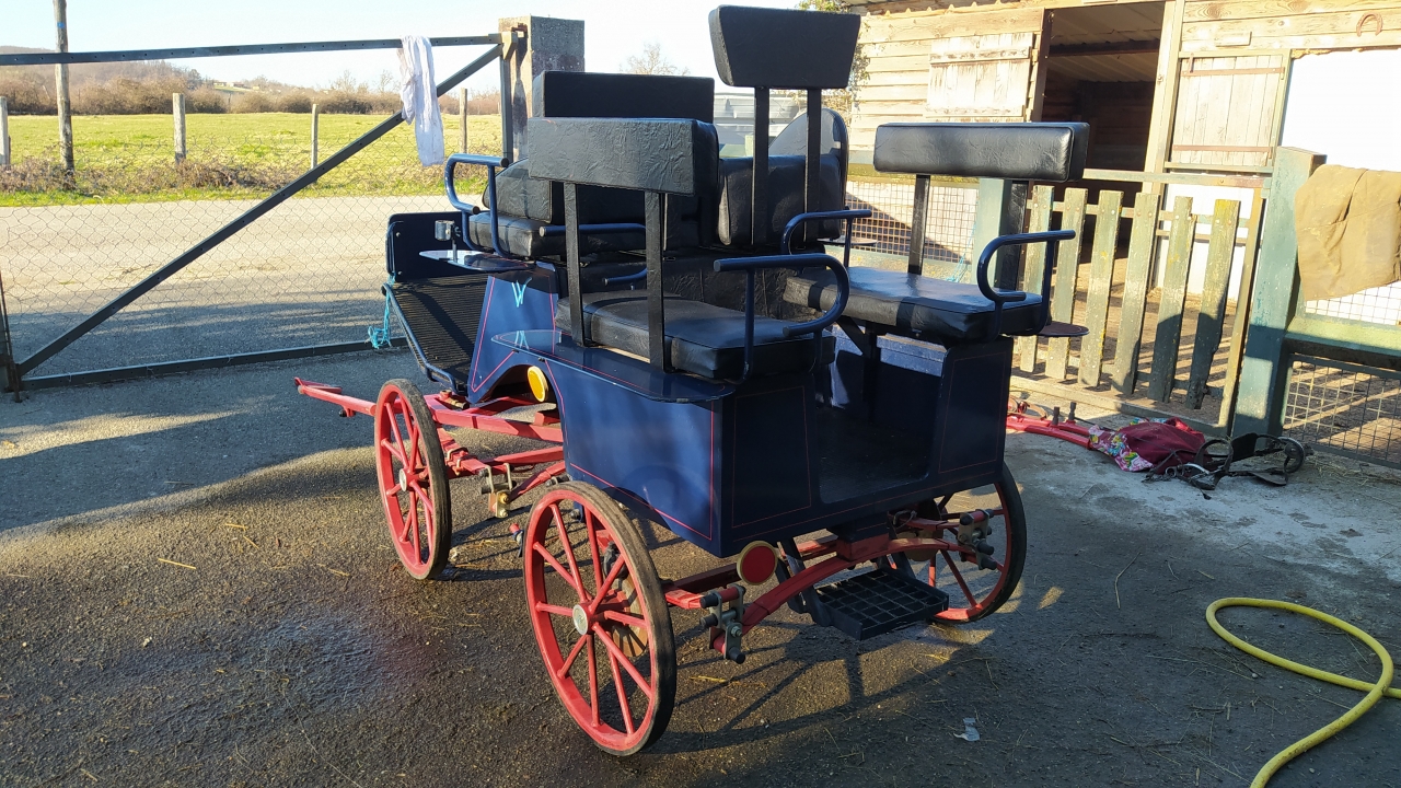 | Dire merci | Alors c'est une Warco "New basics wagonette XS". Le frein sera révisé pour la vente oui car je pense qu'après des années d'immobilisation ça doit pas être top. Il y a de quoi atteler en solo ou en paire. Et un harnais complet taille haflinger. Voici qq photos si ça peut aider. ![]() ![]() ![]() |