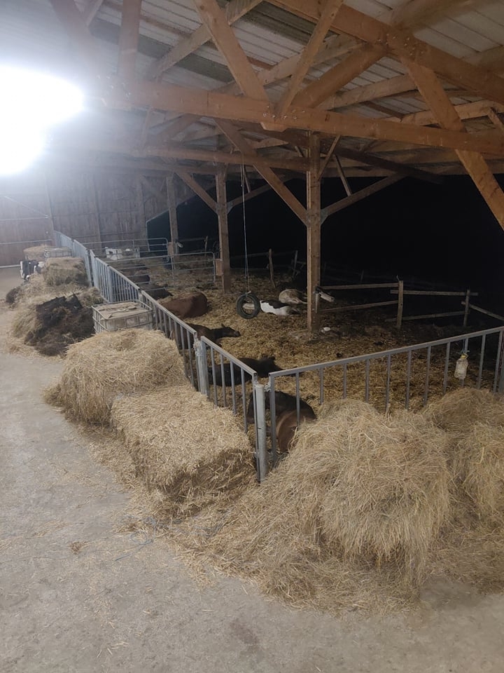 En ligneDire merci | Ici on est presque à l'écurie maison parfaite... 3 immenses boxes toujours ouverts sur le pré immense (15 hectars) dans un cadre magnifique. Boxes avec 2e ouverture sur le hangar ou il y a paille foin grain et aire de pansage. Belle sellerie. Zone stabilisée devant les boxes donc quasi pas de boue. Carrière de 40x20. Étang pour arroser la carrière. Pré super cool pour bosser dedans et tour d'étang stabilisé qui nous sert de piste de galop et trot .Si je voulais que ce soit parfait j'aimerai: - faire un système de pompe pour qu'il y ait des abreuvoirs automatiques dans les boxes. Actuellement les chevaux boivent dans le ruisseau mais quand on les boucle en cas de blessure ou vermifuges du coup on a des corvées d'eau à faire ... - agrandir les ouvertures de boxes et acheter un godet pour faire les boxes au godet et pas à la brouette. Ou alors avoir un rail qui va direct à la fumiere... - faire une zone à fumier bien plus sécurisé et encadré dans des murs pour s'éviter les corvées de réorganisation du fumier - ajouter une zone d'abris devant des boxes pour mettre un râtelier à foin avec balle ronde et s'éviter les corvées de foin quand tout va bien voir fermer les boxes hors saison d'hiver pour s'éviter les corvées de boxes. Mais pour l'heure on a des daims donc impossible de mettre du foin en dehors des boxes sous peine que les daims viennent manger ... (ils n'osent pas rentrer dans les boxes). - un RDL couvert ça j'aimerai bcp... j'adore bosser en RDL et ça permet d'avoir un espace couvert quand ça gele - plus de matos de carrière (obstacle plots cavalerie lettres de dressage) |