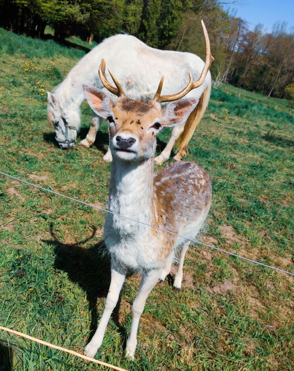 | Dire merci | Mes anciens chevaux ont vécu avec un daim (ou plutôt une) pendant des années sans aucun problème.![]() |