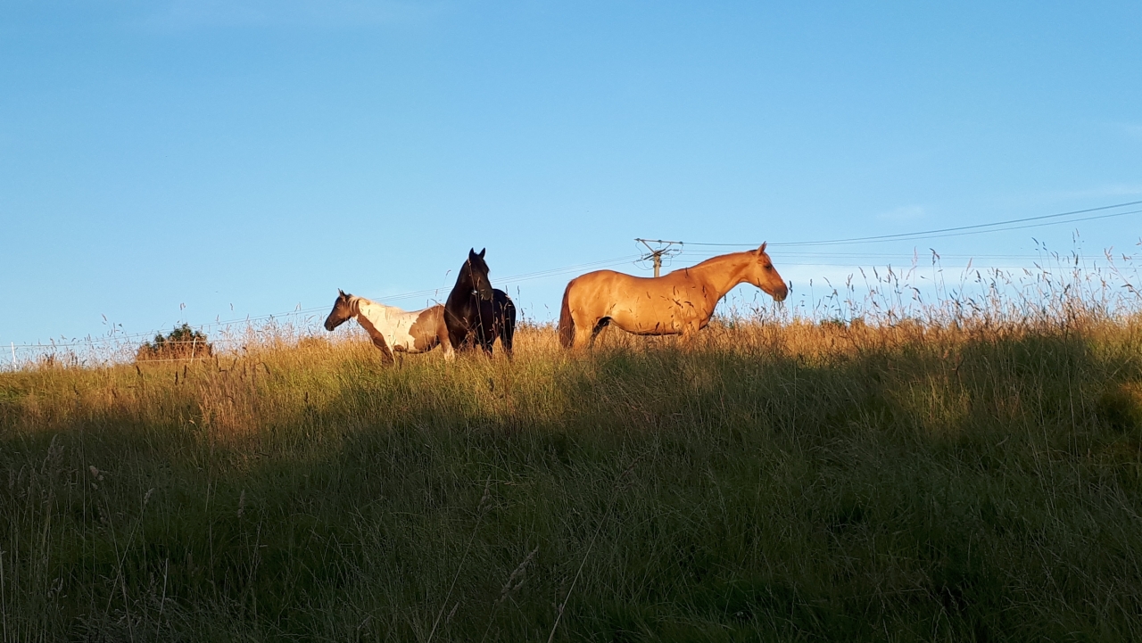 | Dire merci | moi qui suis un peu bête je me demande pourquoi tu ne mets pas direct ton cheval là bas (sauf si vous ne déménagez pas tout de suite quel rêve ce genre d'endroit ! Question pas bête du tout ! Pour plusieurs raisons que je n'ai pas précisées : - Nous n'emménageons pas tout de suite, il y a des travaux à faire dans la maison. - Je n'ai pas de foin pour l'hiver. Ça peut se trouver, mais là pendant quelques mois je serai débordée entre mon travail et les travaux de la maison. - Sans foin, vu la taille de la pâture, ça pourrait peut-être le faire une grande partie de l'hiver. Sauf que la pâture est clôturée de barbelés. En soi ça ne me dérange pas, la clôture est impeccable (mais vraiment, y a pas un barbelé qui dépasse, tout est tendu à mort sur 4 rangées). Mais quelques endroits sont à doubler de fil car le risque de glissade se terminant dans les barbelés n'est pas nul (butte avec pente raide au fond du pré, et le barbelé n'est pas sur la butte mais 1-2m en-dessous, dans la pente). - Je n'ai pas d'autre cheval sous la main, et je ne veux pas que ma jument soit seule Après si je peux je verrai pour l'amener courant février-mars, selon l'avancée et la possibilité qu'elle ne soit pas seule |