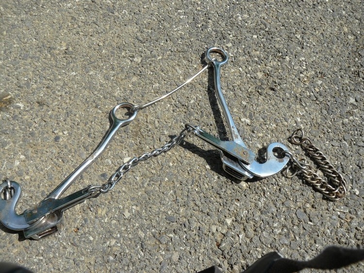| Dire merci | Les branches du hackamore étaient en laiton et sans doute de mauvaise qualité (hackamore commandé à prix d'or à l'étranger). Redébourrage car certaines choses ne sont pas acquises, notamment le montoir (et je me suis fracturé la malléole en début d'année). |