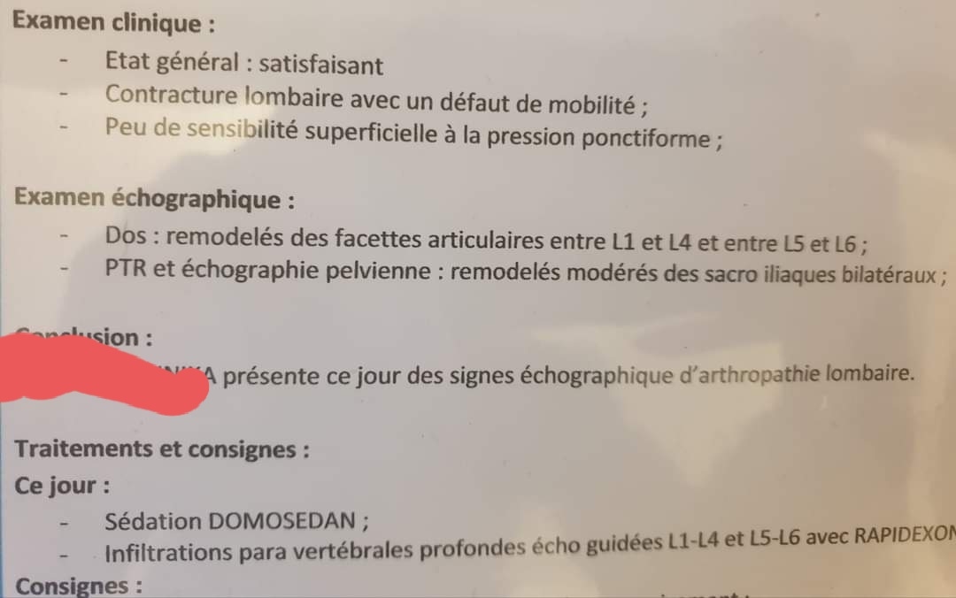 | Dire merci | Bonjour la compagnie, Je me retrouve avec mes deux brocs sur les bras et pour la grise je ne sais pas quoi, où, comment, pourquoi faire. Ça fait plusieurs semaines qu'elle est coincée visiblement aux sacro iliaques. Le pas est très bien, mais au trot elle fait jambe de bois des deux postérieurs, impossible de chercher de l'engagement, si je demande elle rentre fort les fesses et part au galop, où elle fait la danseuse des deux postérieurs à changer de pied de derrière quasiment à chaque foulée. Elle part toujours à faux main droite. Elle a été vue en avril pour un bilan locomoteur déjà. On avait pas infiltré ni en local ni au global (tildren) parce que le dos était pas si mal : ![]() J'ai fait venir la véto et l'ostéopathe deux fois chacune, et rien de mieux, l'ostéopathe me dit que ça se re verrouille tout de suite. Alors je fais quoi là dessus? Je la ramène en clinique pour un nouveau bilan ? Je fais infiltrer en local + tildren direct ? Je ne suis pas sûre que ça soit son arthrose mais peut être une atteinte ligamentaire ou tendineuse. C'est juste que je ne sais pas où chercher. Si je prends rendez-vous en clinique on va me demander ce que je veux et je ne sais pas justement Il y a deux ans elle avait eu ca, sans changement : ![]() Pour le moment elle est sous Doxyval trois semaines pour traiter Lyme déjà. Bref je ne sais pas quoi faire dessus ne serait-ce que pour la soulager niveau dos. Quels examens, quel traitement de soutien demander. Merci de vos idées... |