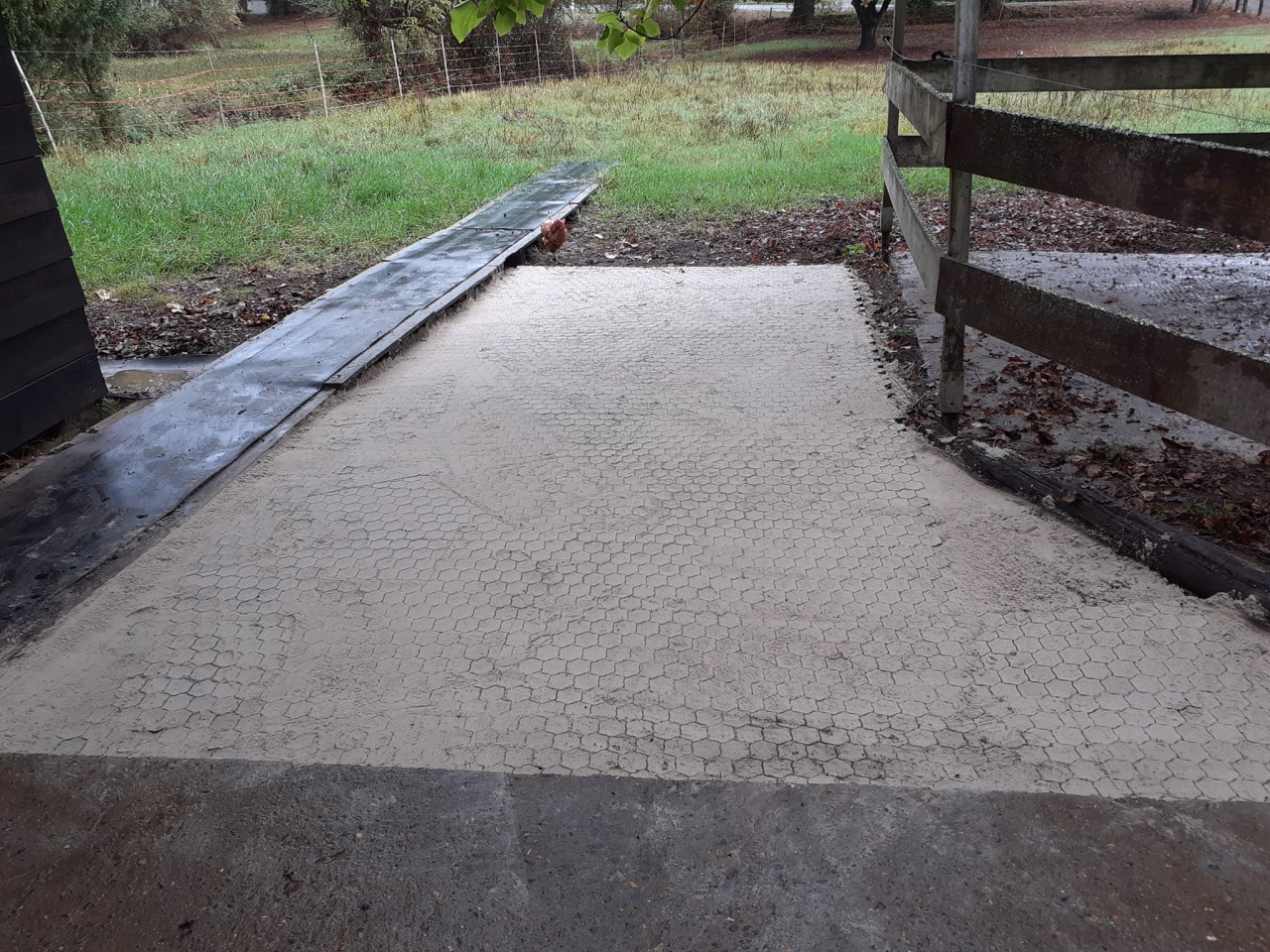 | Dire merci | J'en ai posé cet été car champs de boue devant les box. Pas de recul, les chevaux n'y sont pas encore et surtout, pas de pluie depuis... hum... bien trop longtemps. J'ai applani au mieux le terrain en laissant une légère pente et j'ai rempli les dalles de sable. A voir cet hiver comment ça va se comporter. J'ai acheté les dalles chez Equip-Horse. ![]() |