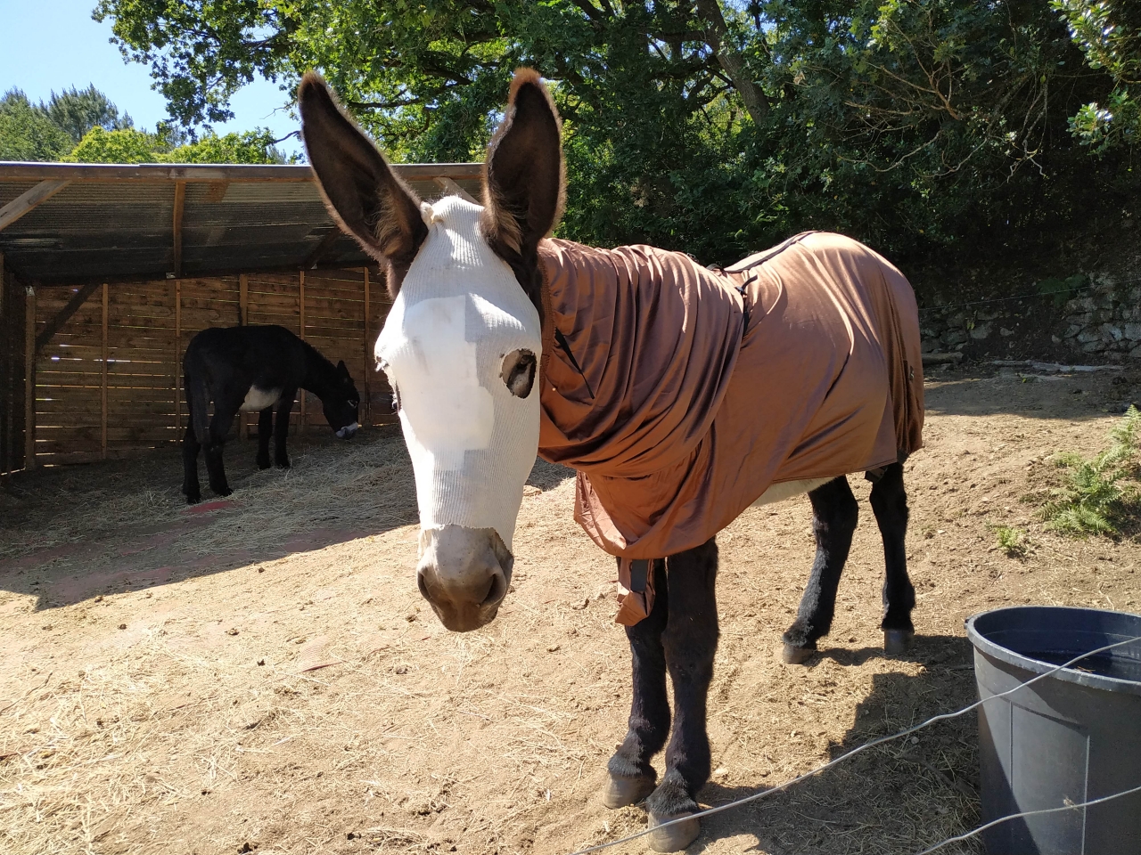 | Dire merci | J'ai acheté celle-ci chez Padd, autour de 80€ de mémoire. Un vrai soulagement pour mon gros, fini les produits chimiques, le poil moche et l'âne qui se jette dans les genêts tant il se fait piquer... sur la photo il manque la protection ventrale, même système que sur la photo de takhan plus haut. Ça paraît super mal taillé mais je crois que ce n'est pas la faute de la couverture, c'est la morpho âne : dos long, petit cul pointu, poitrail étroit Sûrement l'un de mes investissements les plus utiles de ces deux dernières années, elle sert tous les jours ou presque d'avril à septembre, sauf la nuit ![]() |