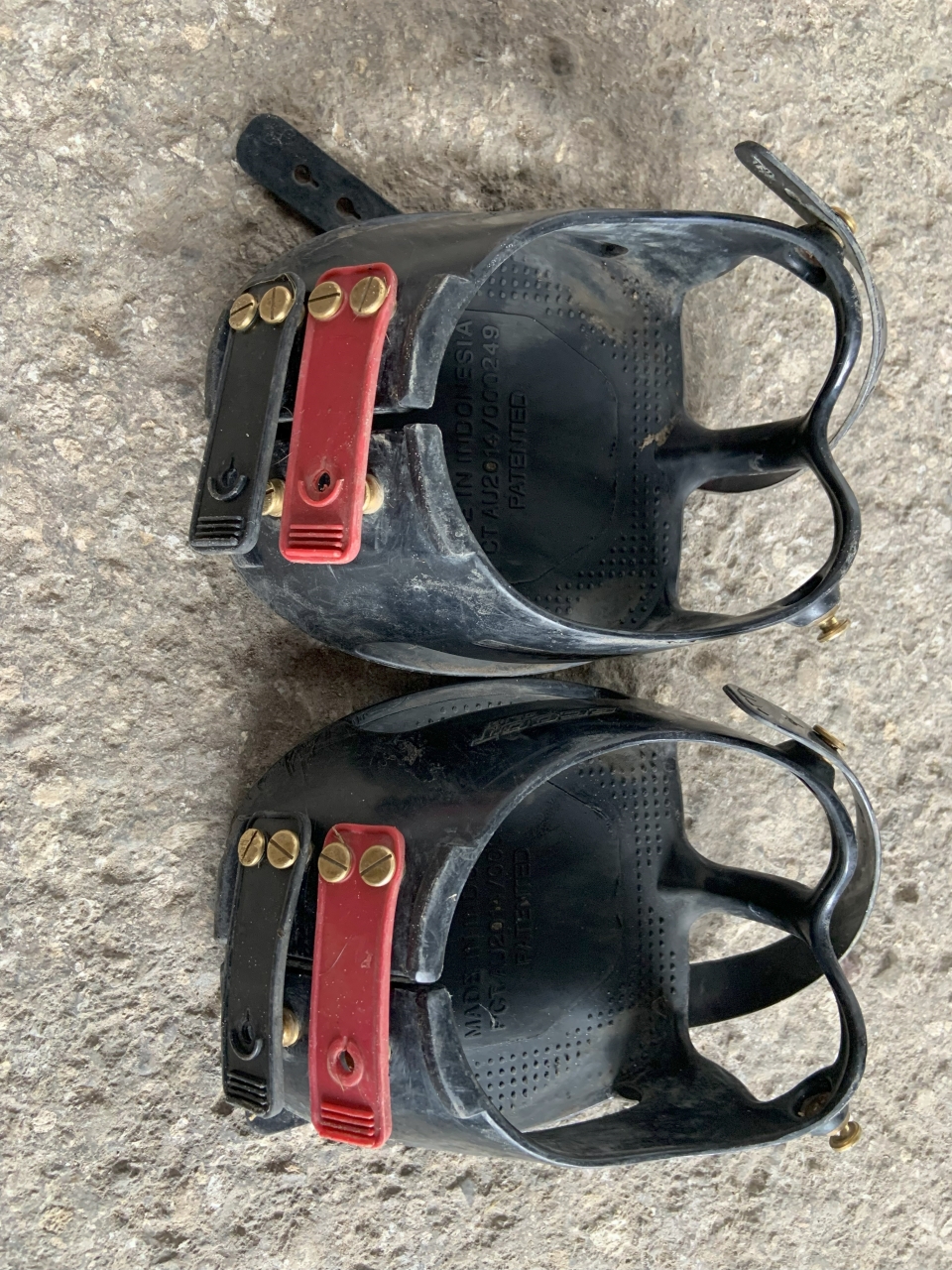 | Dire merci | Ah oui la mienne tire aussi si je mets trop longtemps bon les Joggings s'enlèvent assez facilement.Merci pour les photos le pex On voit bien que le plastique de la semelle doit être moins tendre que sur les miennes, là ça fait bien "usé" mais pas "abîmé". J'aime bien aussi le côté minimaliste, plus proche du pied que mes Joggings. Avec ma jument qui se touche de partout, je pense que ça aiderait qu'il y ait moins d'épaisseur tout autour du sabot. Bon j'ai bien envie de les tester, le seul souci c'est tout ce que vous dites sur les tailles qui ne sont pas bien juste... je vais voir si je peux en trouver pour essayer, en prêt. Au moins pour la taille. |