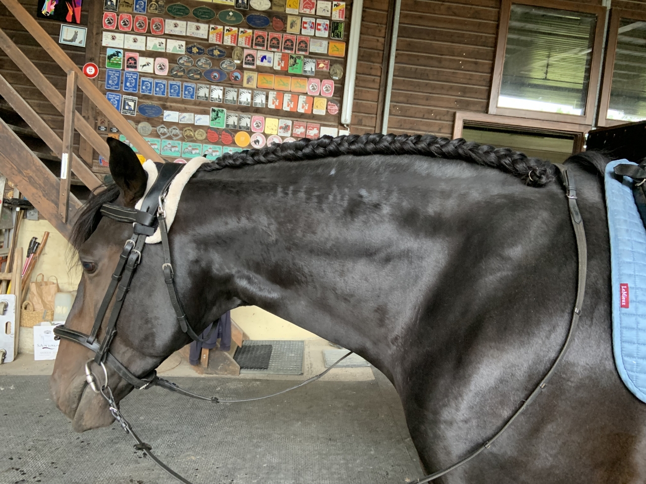 | Dire merci | La crinière au peigne, même mon ancienne jument pourtant pas sensible ne supportait pas, mon lusi c’est même pas en rêve. En effet, la brosse sera mal vue, c’est tresse d’étalon « obligatoire ». Et autant ma jument avait la brosse (ça évitait de pionter en concours :ange autant lui je ne le vois pas autrement qu’avec la crinière longue. Étonnamment l’hiver elle tient le coup même avec mon crado de compet, j’y touche juste le moins possible. Oui je vais utiliser du gel, ça me parait le meilleur. La merdouille c’est que je dois présenter en main puis seller et monter. Il va forcément plus bouger que si je pouvais tresser et sauter dessus. J’ai de toute façon prévu de tresser sur place car ça ne résistera jamais aux 1,5h de van + l’attente. |