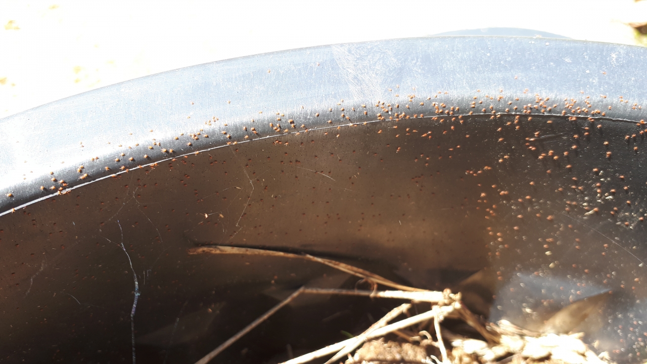 Petites bêtes rouges dans bac à crottins : cékoi ?